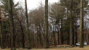 After about an hour of that, I thought, if I walked in the opposite direction, into and through the park, I could escape. On entering, the blowing noise was audible all the way up the straightaway by the ballfields.