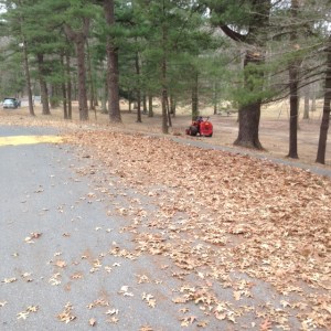 After about an hour of that, I thought, if I walked in the opposite direction, into and through the park, I could escape. On entering, the blowing noise was audible all the way up the straightaway by the ballfields.